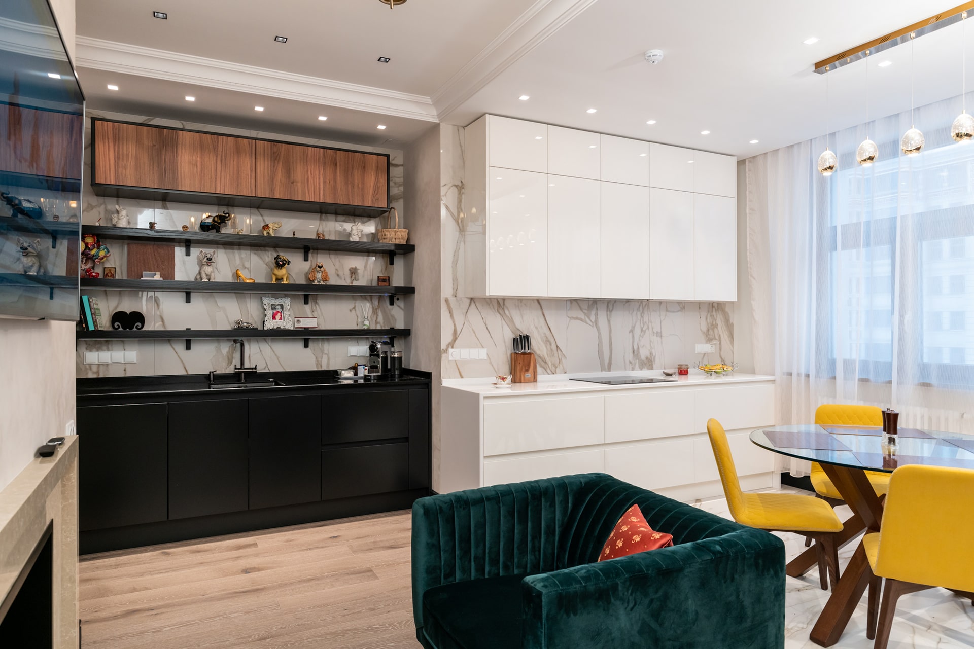 • Тяжелые портьеры и массивные люстры на кухне не слишком уместны, их лучше оставить для гостиной и парадных залов загородных домов.