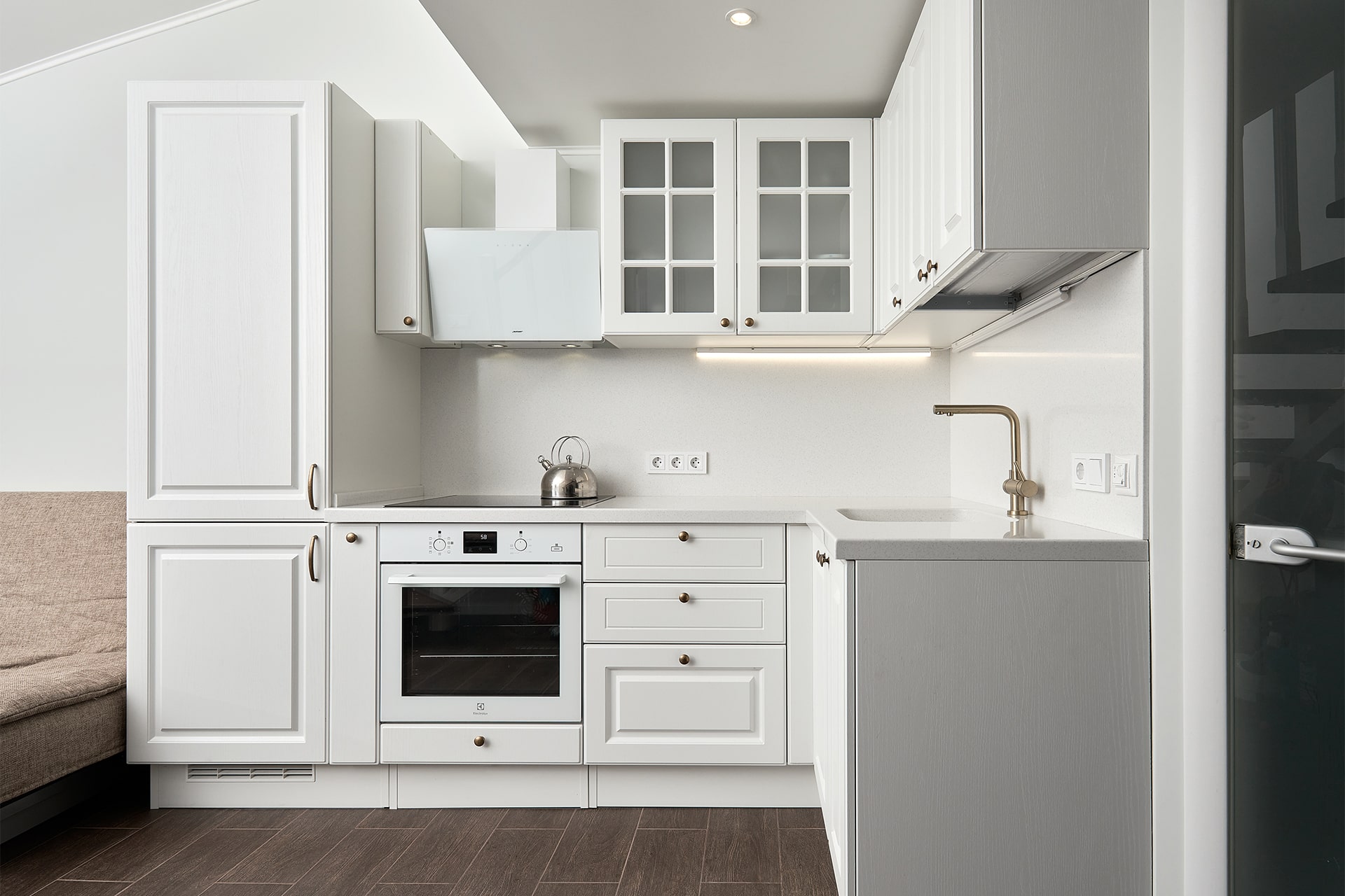 Белая кухня и шкаф для заготовок Виктора Логинова