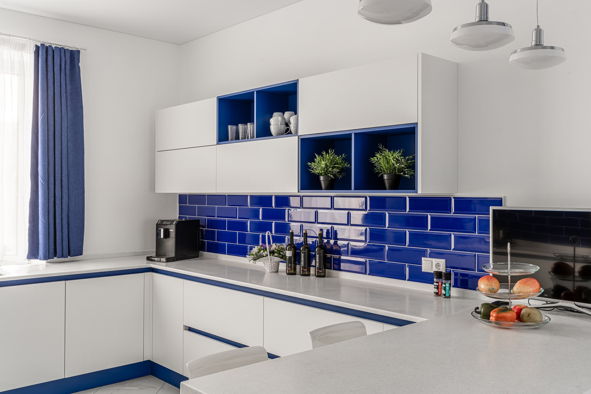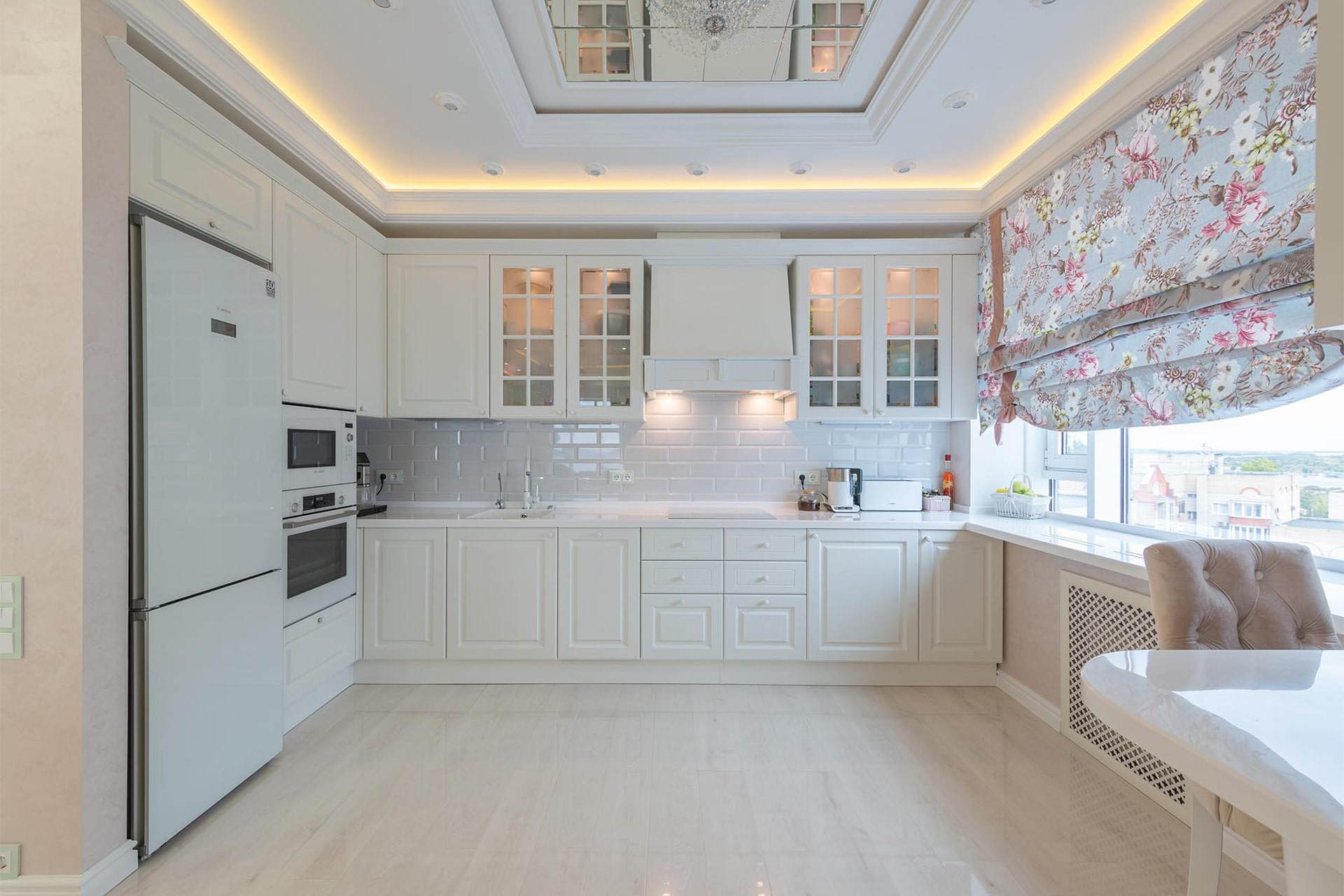 • безграничные возможности для дизайна и его последующего апгрейда: белую кухню сегодня легко сочетать с синими акцентными стульями, а через год с лимонными шторами и текстилем.